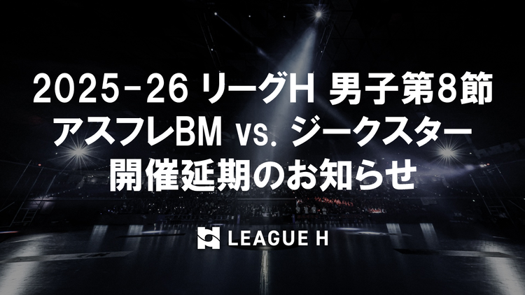 2025-26 リーグH レギュラーシーズン 男子第8節 アスフレBM vs. ジークスター 開催延期のお知らせ