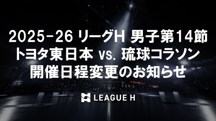 2025-26 リーグH 男子第14節 トヨタ東日本 vs. 琉球コラソン 開催日程変更のお知らせ