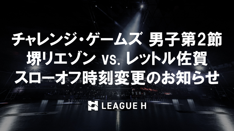 2025-26 リーグH チャレンジ・ゲームズ 男子第2節 堺リエゾン vs. レットル佐賀 スローオフ時刻変更のお知らせ