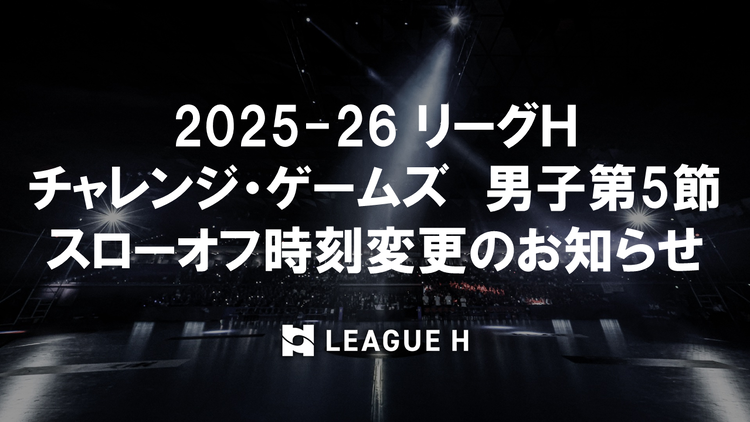 2025-26 リーグH チャレンジ・ゲームズ 男子第5節(北ブロック) スローオフ時刻変更のお知らせ