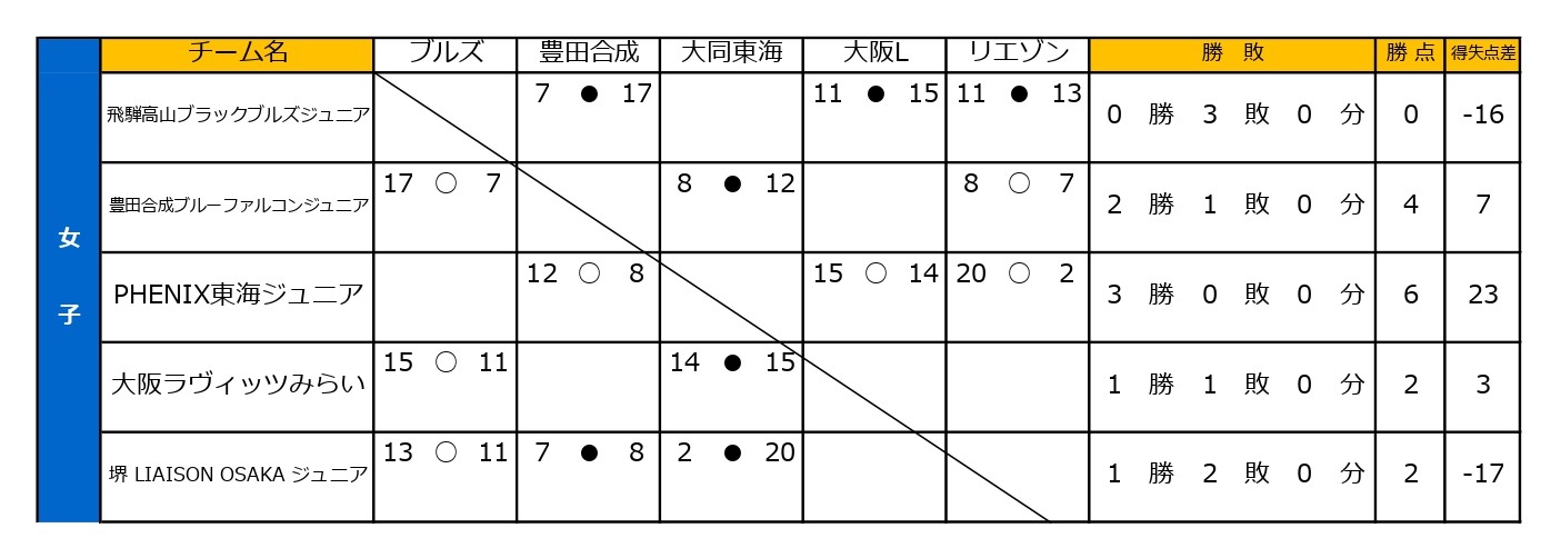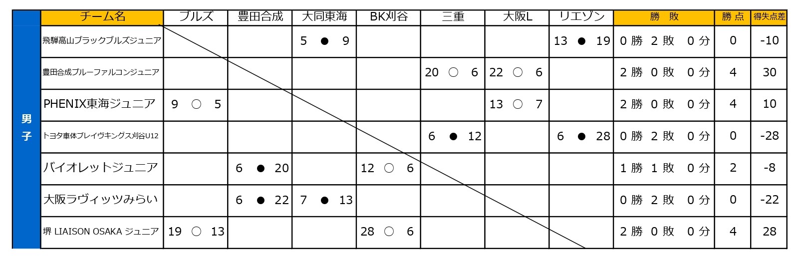 「2025-26 リーグH ジュニアカップ」東・中ブロック 1日目試合結果