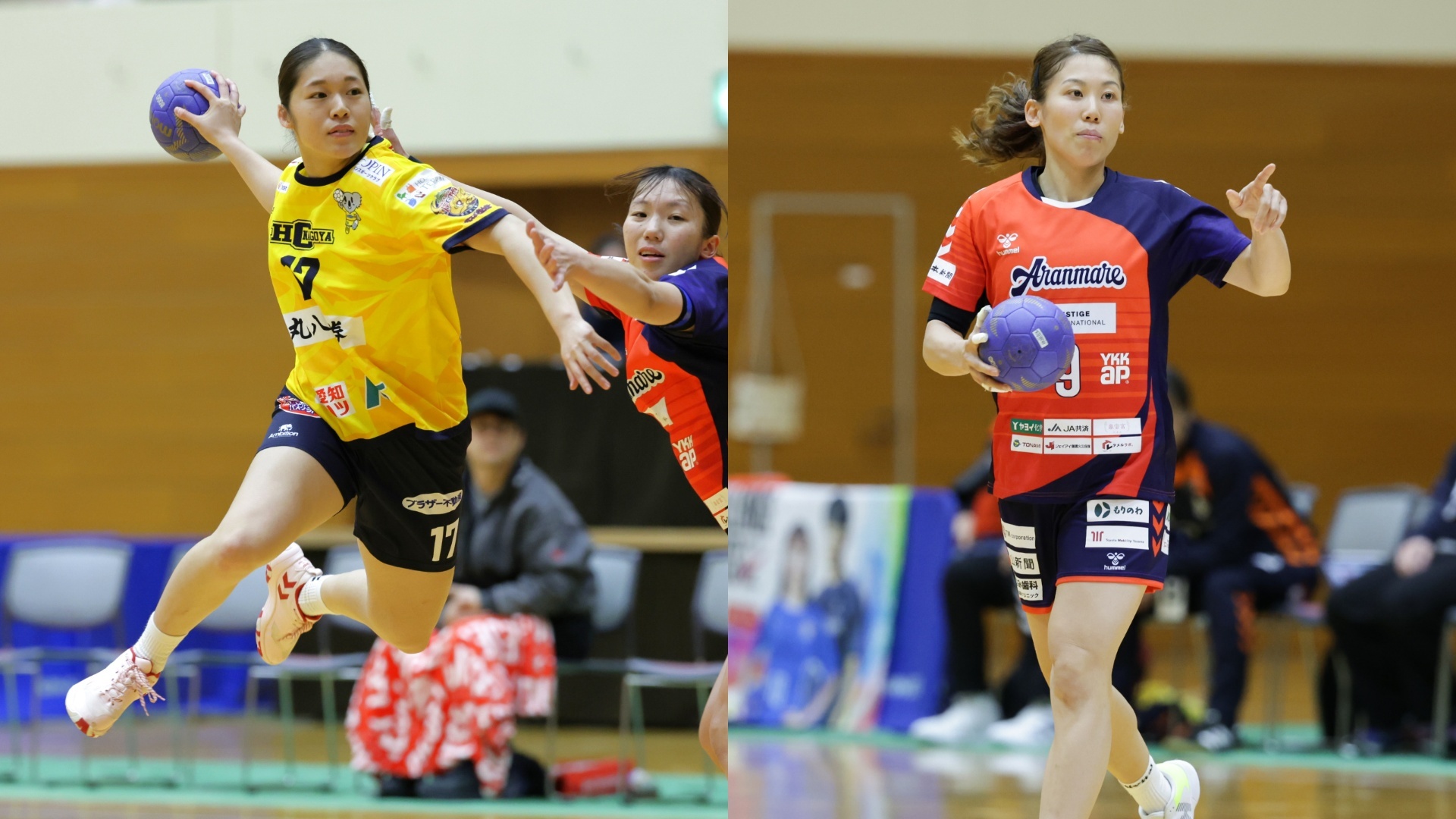 HC名古屋がホームにアランマーレを迎えての一戦。世界選手権、日本選手権の中断期間明け初戦となるHC名古屋は、ここまで5勝2敗で3位。昨季王者のブルーサクヤをアウェイの地で撃破するなど、今季の台風の目となる戦いを見せている。攻撃ではRB井桁晴香、CB田沼美津希、CB樋口怜於奈の3人のバックプレーヤーで102得点をあげており、積極果敢なブレイクスルーやディスタンスシュートでゴールを狙い続ける。守備では日本代表経験もあるGK榊真菜を中心に、3枚目のPV佐藤那有、2枚目のRW夏堀郁音らがアグレッシブなディフェンスを仕掛ける。対するアランマーレは、4勝1分3敗で4位。前節ではハニービーに勝利し、直近5戦で負けなしと好調をキープしている。ひときわ存在感を放つのはGKフレヤハマー。ディフェンスと連携した安定したセービングと決定機に輝くビッグセーブで、現在シュート阻止率ランキングで首位(41.5%)につけている。また、昨年の韓国Hリーグでベスト7を受賞したRBユ・ソジョンが移籍加入。日本代表のRW秋山なつみ、LB大松澤彩夏らとのコンビネーションに期待がかかる。両者の勝点差はわずか「1」。順位に直結する重要な一戦だけに、白熱した試合展開となることだろう。
