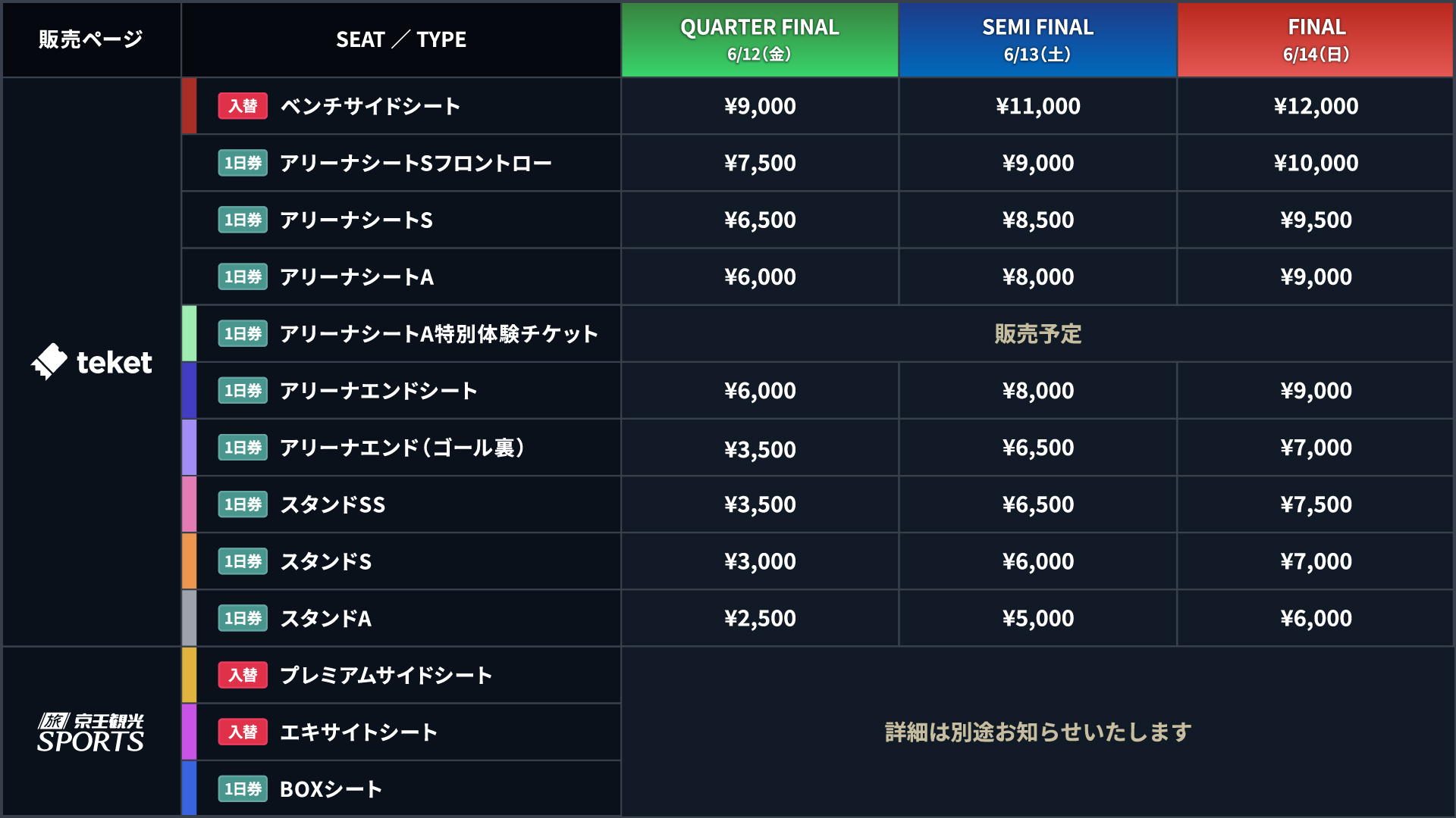 | Semi FINAL 6月13日(土) |